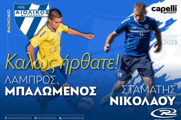Παίκτες του Αιολικού οι Μπαλωμένος και Νικολάου Ανακοινώσεις, Ποδόσφαιρο / 20/10/2022 Η διοίκηση του Παίκτες του Αιολικού οι Μπαλωμένος και Νικολάου Περισσότερα »
