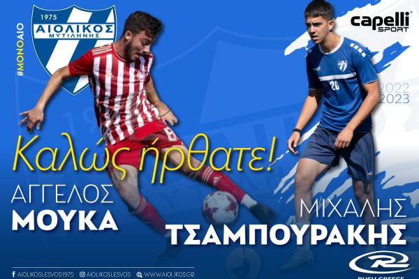 Παίκτες του Αιολικού οι Μούκα και Τσαμπουράκης Ανακοινώσεις, Ποδόσφαιρο / 23/10/2022 Η διοίκηση του Παίκτες του Αιολικού οι Μούκα και Τσαμπουράκης Περισσότερα »
