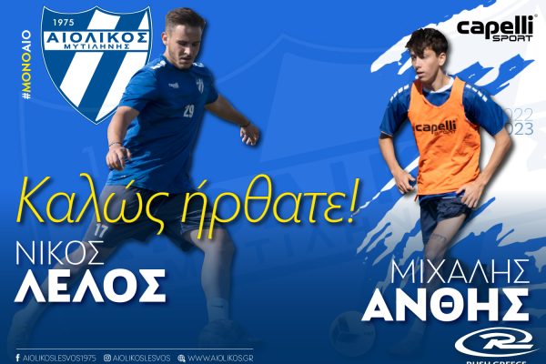 Παίκτες του Αιολικού οι Λέλος και Άνθης Ανακοινώσεις, Ποδόσφαιρο / 25/10/2022 Η διοίκηση του Παίκτες του Αιολικού οι Λέλος και Άνθης Περισσότερα »