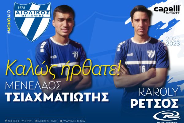 Παίκτες του Αιολικού οι Τσιαχματιώτης και Ρέτσος Ανακοινώσεις, Ποδόσφαιρο / 31/10/2022 Η διοίκηση του […] Παίκτες του Αιολικού οι Τσιαχματιώτης και Ρέτσος Περισσότερα »